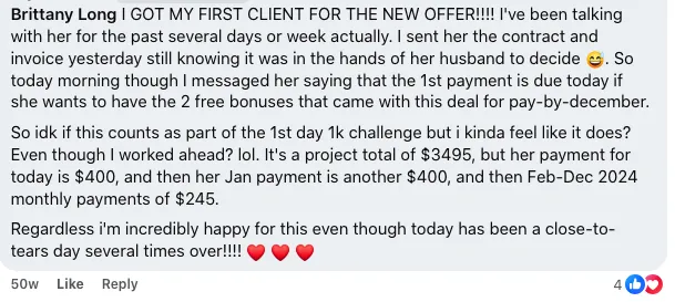 The AI Content Clone course is a one-time investment of $297 or 3 monthly payments of $99. Once purchased, you have access for an entire year.
