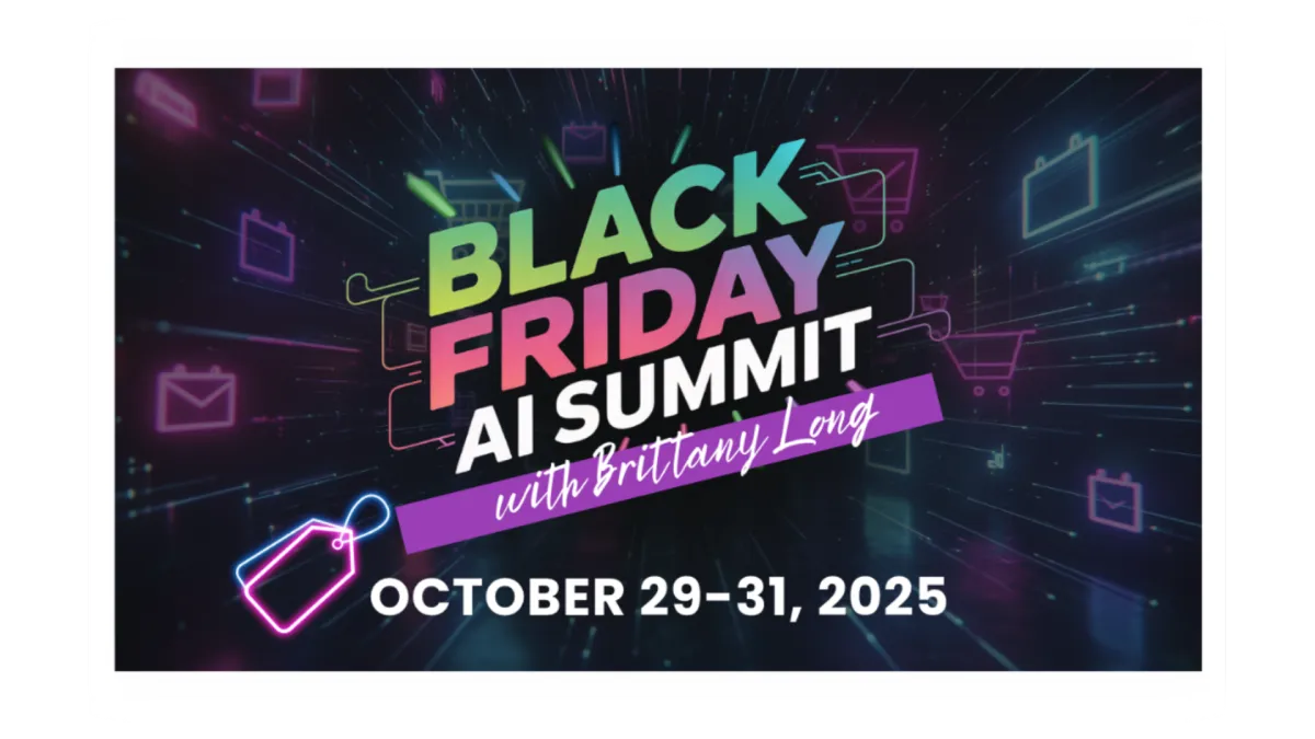 The Black Friday AI Summit is your final prep step — built for speed, clarity, and results. Unlike other summits that take weeks to implement, this is a focused, action-oriented event designed to help you make sales this Black Friday without spending hours creating content or second-guessing your strategy. You’ll walk away with expert insights, what AI tools to use, templates, and a plan you can start using right away — even if you’re joining last minute.